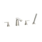 Aspirations 4-Hole Two-Handle Deck Mount Roman Tub Filler Faucet Trim, With Lever Handles and Personal Shower, Brushed Nickel